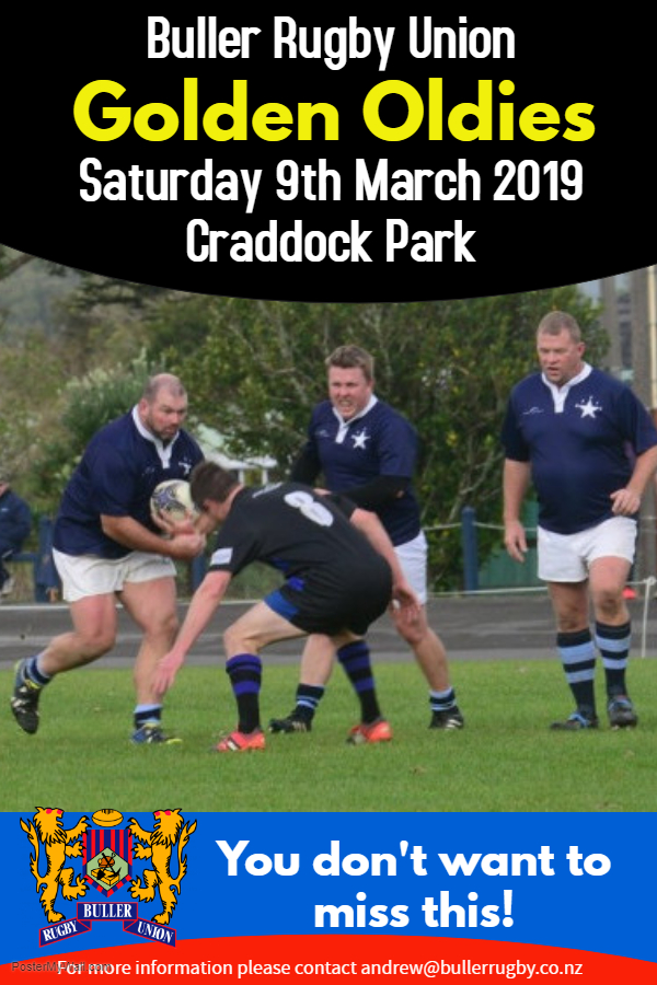 GOLDEN OLDIES 2019 – Saturday 9th March 2019 11:45am – Tournament Briefing at Craddock Park TIME FIELD 1 FIELD 2 12:00pm Westport v Old Boys (MN) Reefton v Karamea (MW)…